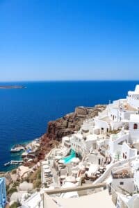 Santorini es otra isla griega muy popular entre los turistas. La isla alberga numerosas playas impresionantes, así como las famosas iglesias de cúpula azul. Santorini es también un lugar ideal para disfrutar de algunas de las mejores puestas de sol de Grecia.